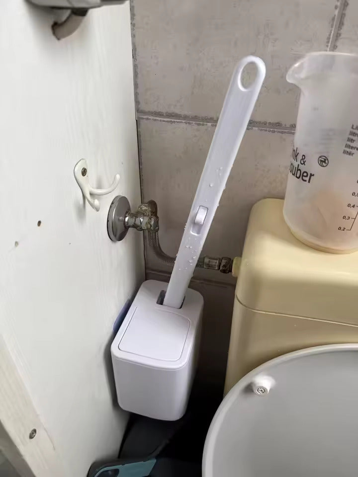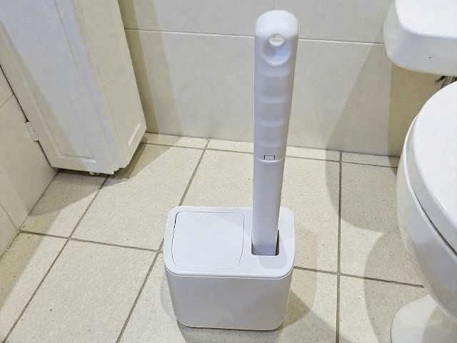 Použití je jednoduché. Vysuňte rukojeť z držáku, nasaďte jednorázovou hlavici a vyčistěte vnitřek toalety. Po dokončení stiskněte tlačítko pro uvolnění hlavice a vyhoďte ji do koše. Víko zásobníku se otevírá automaticky, takže se nedotýkáte znečištěných částí – hygienicky od začátku do konce.